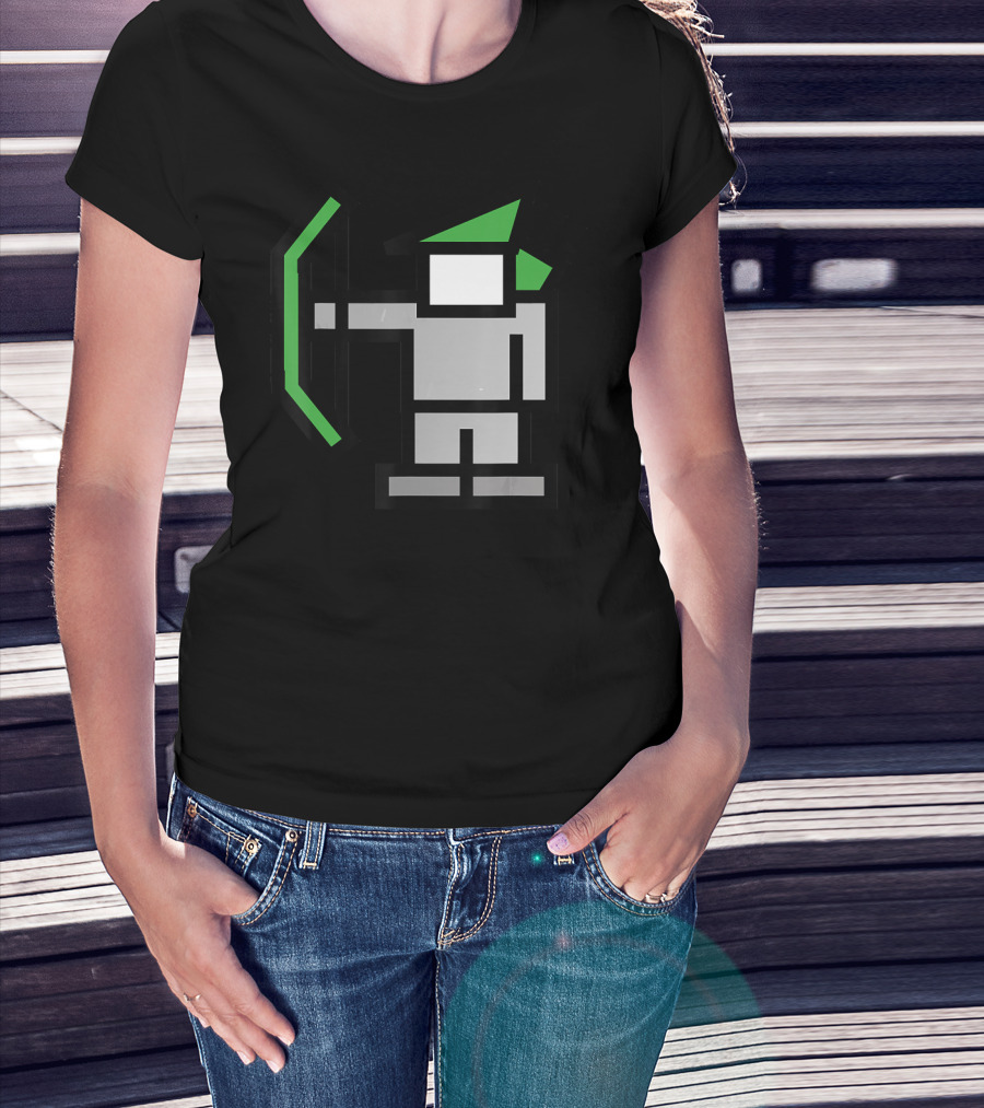 8bit Robin Hood Pixel Bow And Green Hat T-Shirt