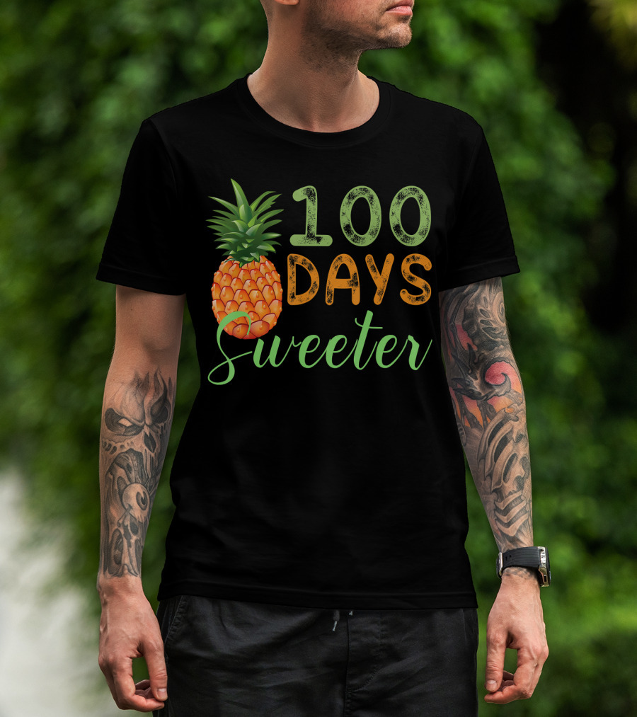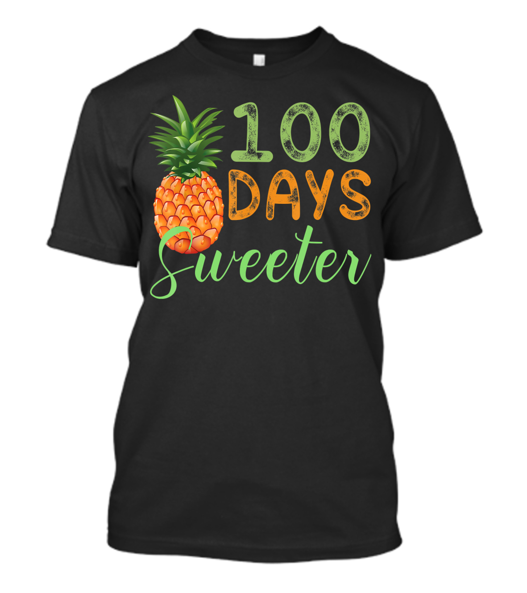 The 100 Days Sweeter Pineapple T-shirt is designed for everyday wear and a consistent fit. Fabric is pre-shrunk ring-spun cotton with durable stitching. See the size chart below for exact measurements.