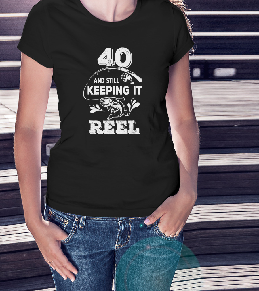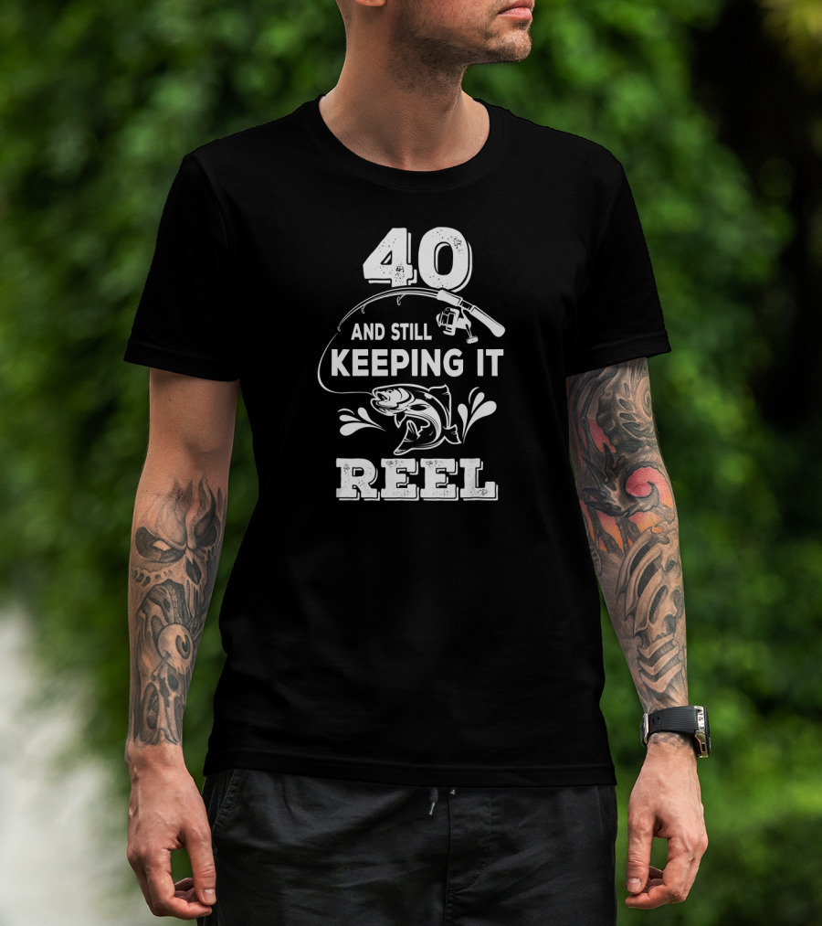 40 And Still Keeping It Reel Fishing Graphic With Fish And Rod T-Shirt