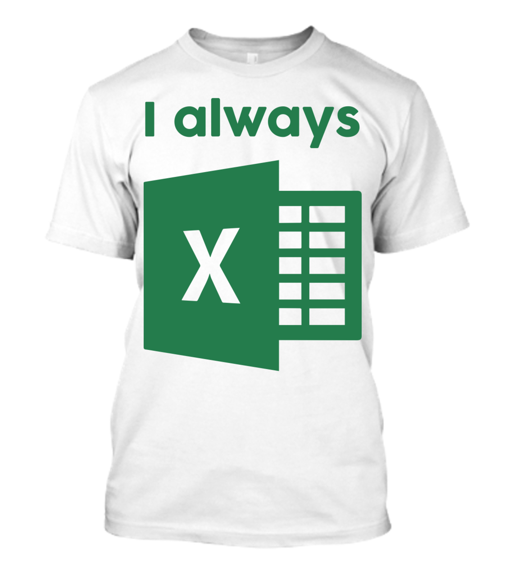 The Jacqui Collins I Always Excel Spreadsheet Humor T-shirt is designed for everyday wear and a consistent fit. Fabric is pre-shrunk ring-spun cotton with durable stitching. See the size chart below for exact measurements.