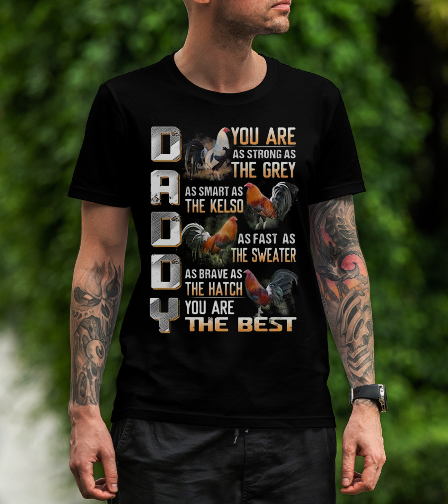 The Daddy You Are As Strong As The Grey As Smart As The Kelso As Fast As The Sweater As Brave As The Hatch You Are The Best T-shirt is designed for everyday wear and a consistent fit. Fabric is pre-shrunk ring-spun cotton with durable stitching. See the size chart below for exact measurements.