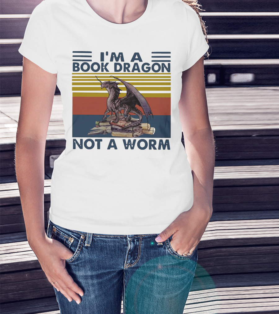 I'm A Book Dragon Not A Worm Fantasy Creature On Stack Of Books T-Shirt