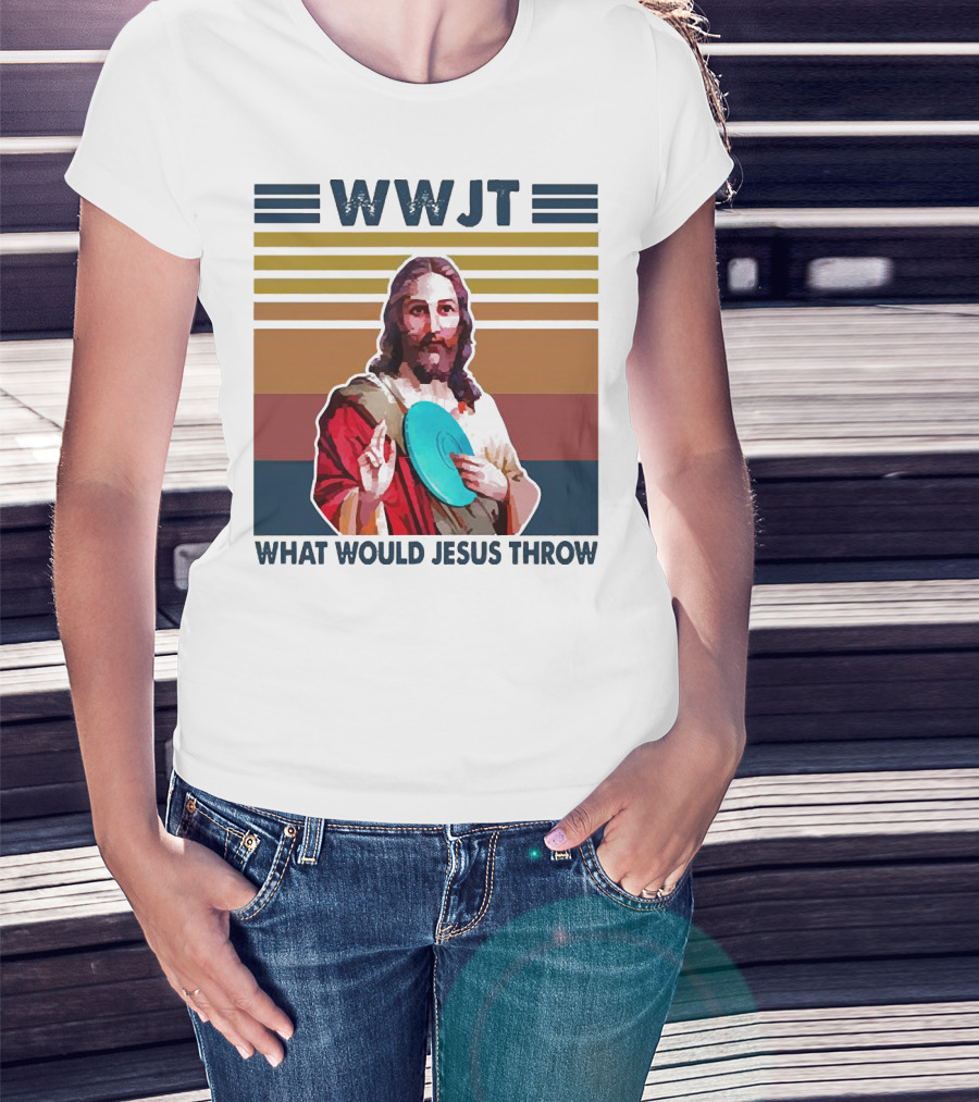 WWJT What Would Jesus Throw Disc Golf Frisbee Retro Stripes T-Shirt