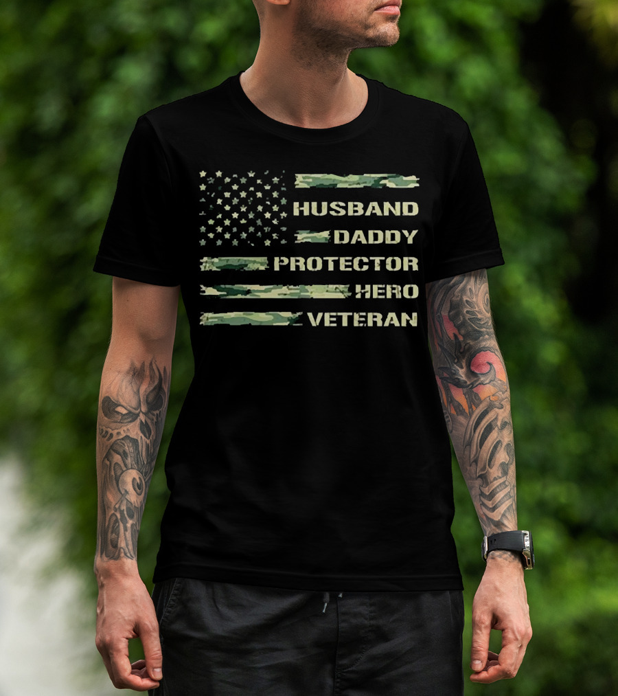 Husband Daddy Protector Hero Veteran American Flag T-Shirt