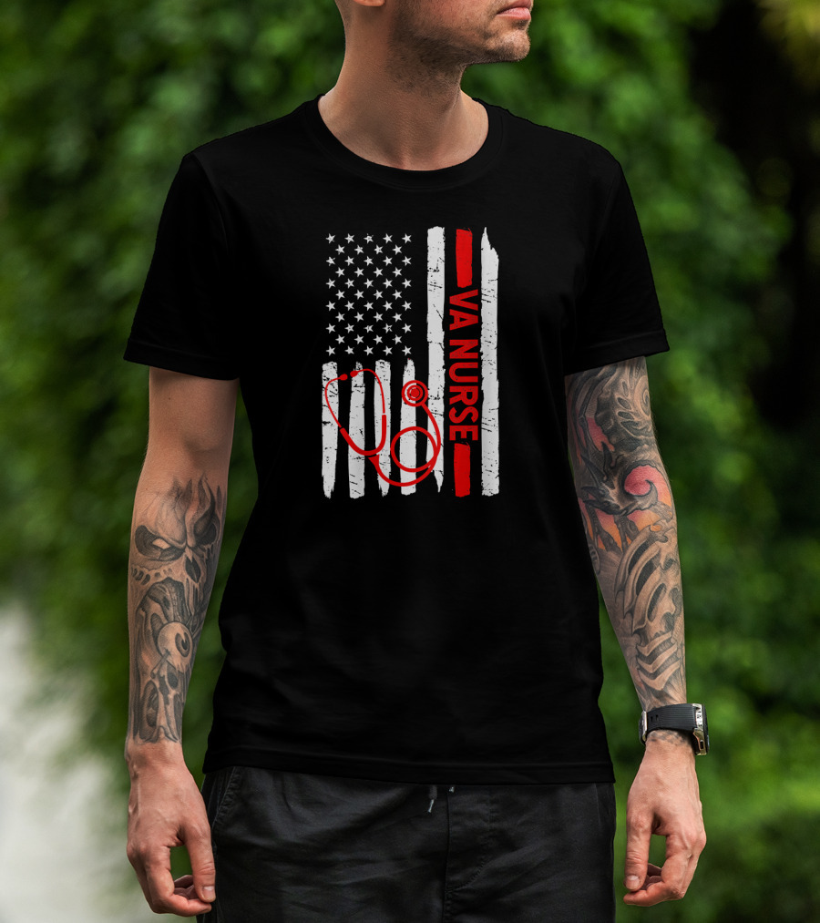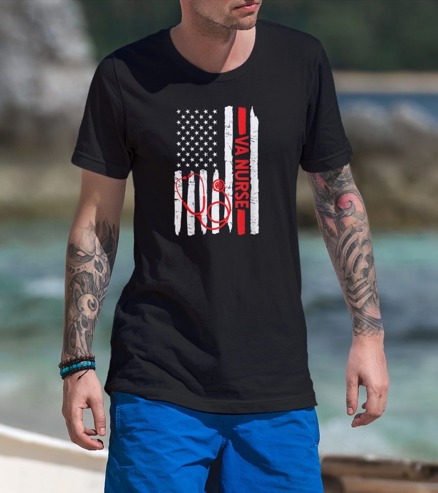 American Flag VA Nurse Stethoscope Black History Month T-Shirt