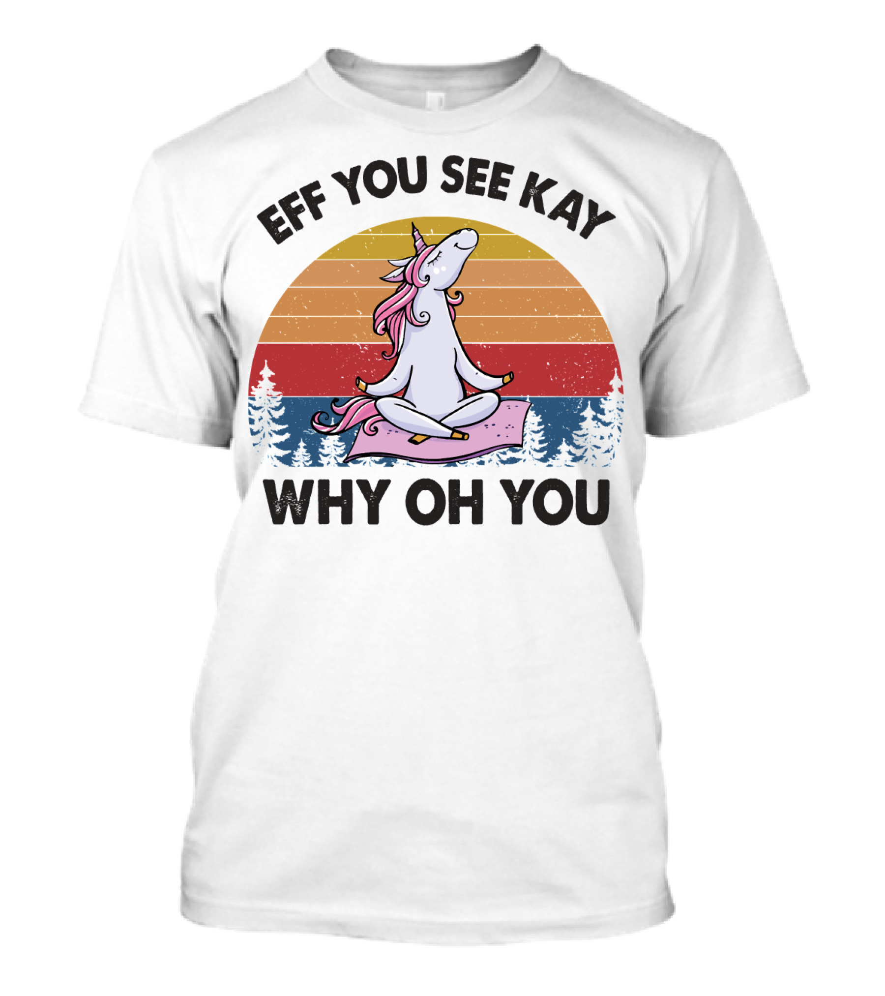 The Eff You See Kay Why Oh You Unicorn Meditation Forest Retro Sunset T-shirt is designed for everyday wear and a consistent fit. Fabric is pre-shrunk ring-spun cotton with durable stitching. See the size chart below for exact measurements.