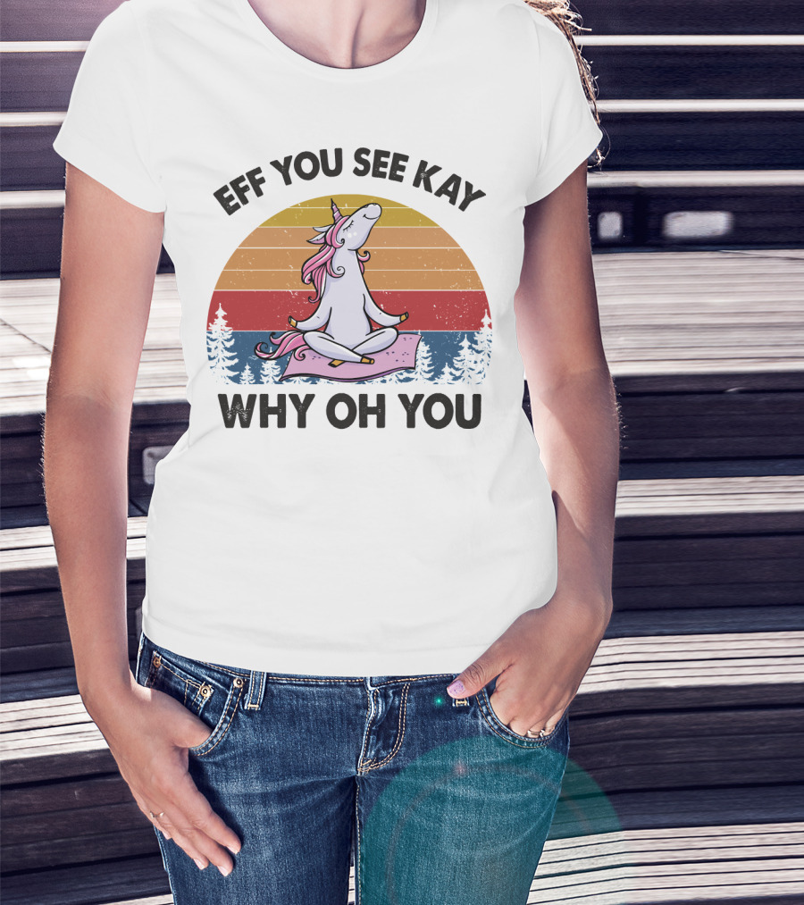 Eff You See Kay Why Oh You Unicorn Meditation Forest Retro Sunset T-Shirt
