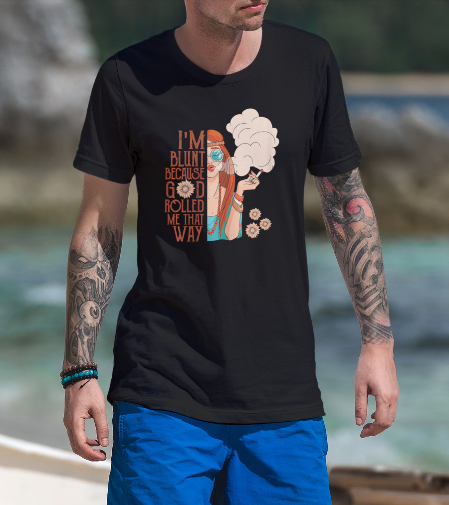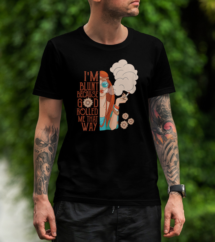 The I'm Blunt Because God Rolled Me That Way Retro Smoking Woman Flowers T-shirt is designed for everyday wear and a consistent fit. Fabric is pre-shrunk ring-spun cotton with durable stitching. See the size chart below for exact measurements.