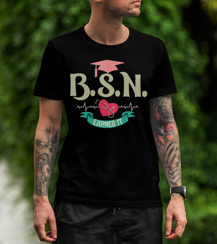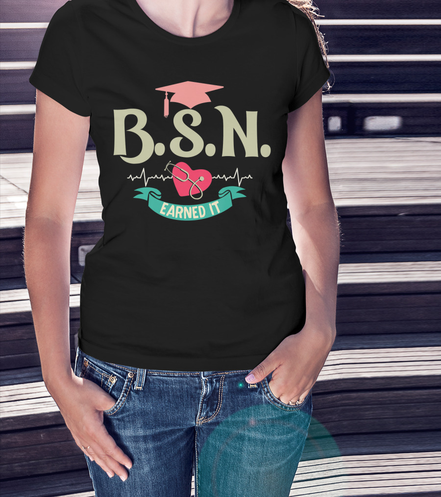 BSN Earned It Heartbeat Stethoscope Nurse Graduate T-Shirt