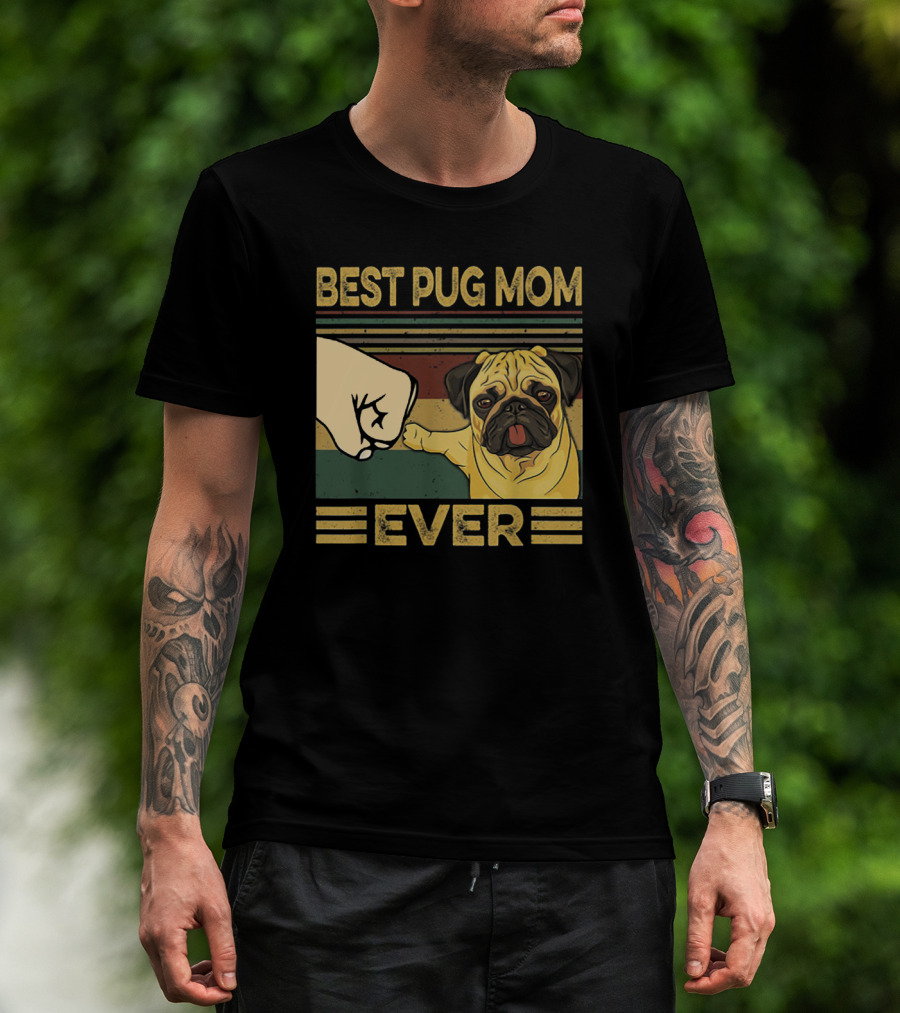 The Best Pug Mom Ever Fist Bump T-shirt is designed for everyday wear and a consistent fit. Fabric is pre-shrunk ring-spun cotton with durable stitching. See the size chart below for exact measurements.