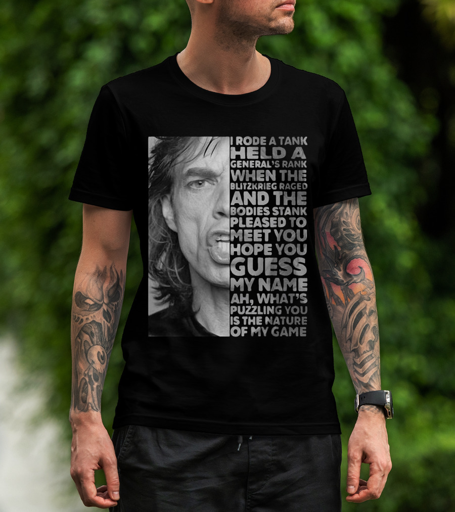 The I Rode A Tank Held A General's Rank When The Blitzkrieg Raged And The Bodies Stank Pleased To Meet You Hope You Guess My Name Ah What's Puzzling You Is The Nature Of My Game T-shirt is designed for everyday wear and a consistent fit. Fabric is pre-shrunk ring-spun cotton with durable stitching. See the size chart below for exact measurements.