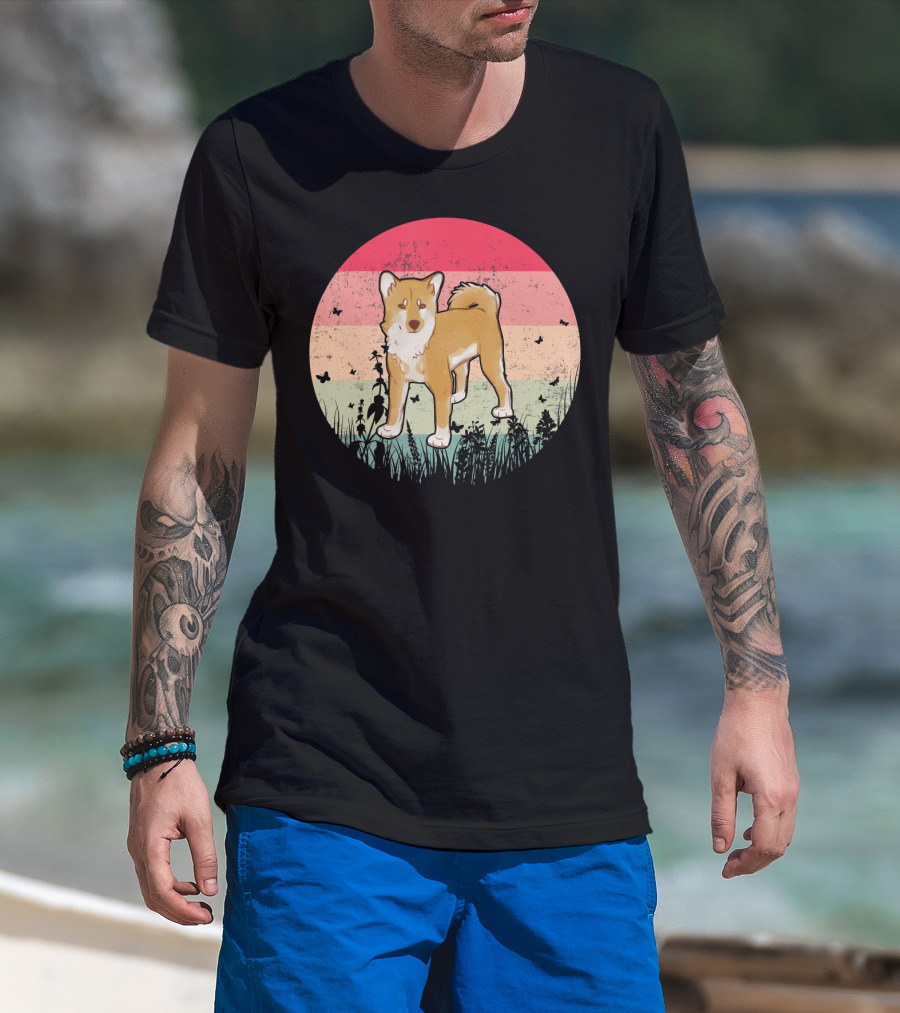The Akita Inu Vintage Retro Akit Circle Silhouette with Stripes and Butterflies T-shirt is designed for everyday wear and a consistent fit. Fabric is pre-shrunk ring-spun cotton with durable stitching. See the size chart below for exact measurements.