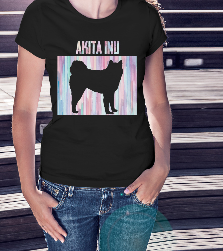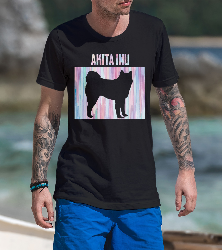 AKITA INU Silhouette On Pastel Watercolor Stripes T-Shirt