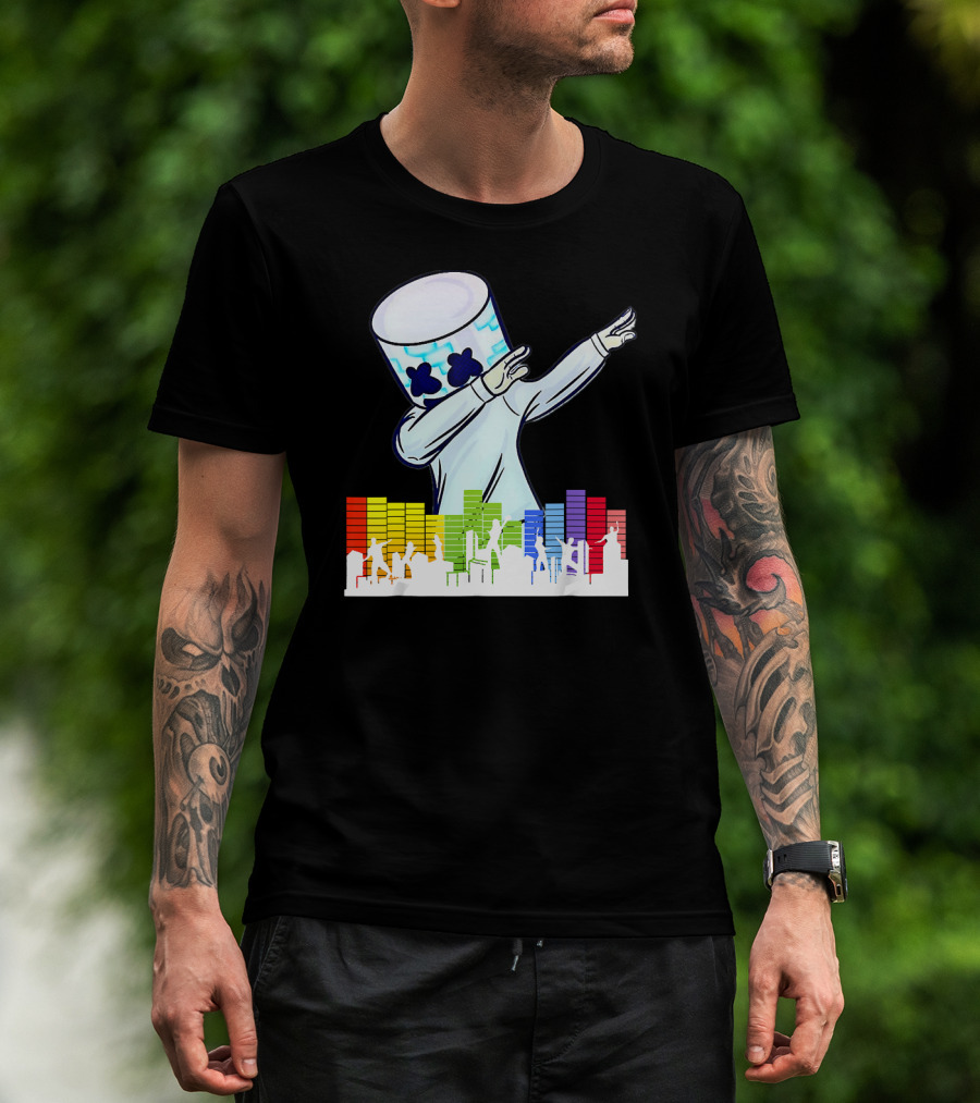 The All I Want For Christmas Is Marshmello DJ Dabbing with Music Bars T-shirt is designed for everyday wear and a consistent fit. Fabric is pre-shrunk ring-spun cotton with durable stitching. See the size chart below for exact measurements.