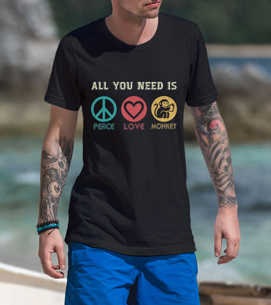 All You Need Is Peace Love And Monkey Symbols T-Shirt