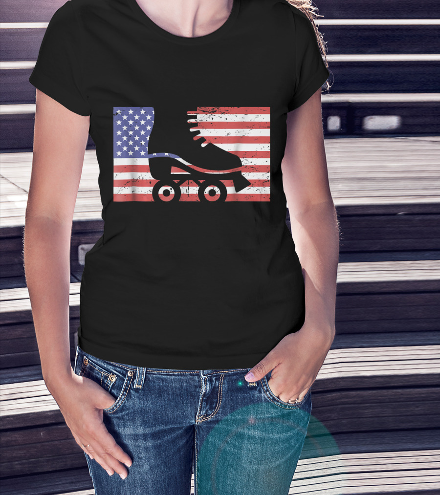 The American Flag with Roller Skate T-shirt is designed for everyday wear and a consistent fit. Fabric is pre-shrunk ring-spun cotton with durable stitching. See the size chart below for exact measurements.