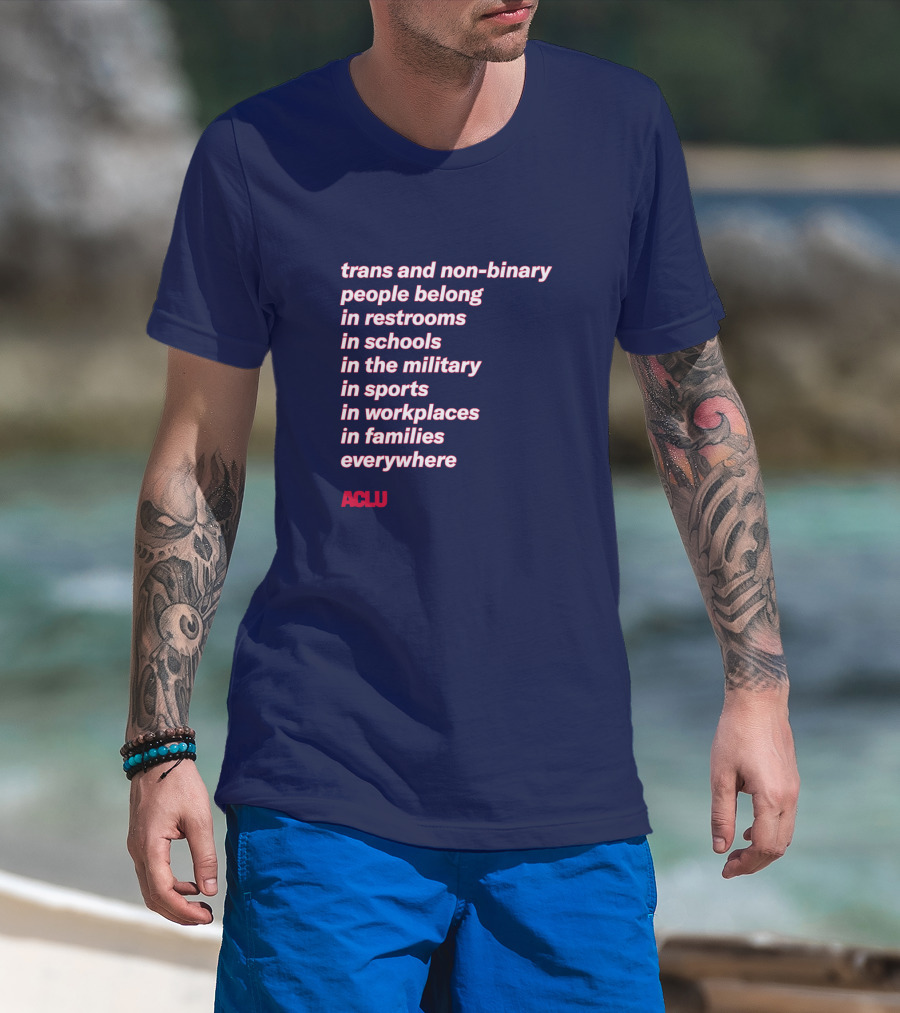 Trans And Non-binary People Belong In Restrooms In Schools In The Military In Sports In Workplaces In Families Everywhere ACLU T-Shirt