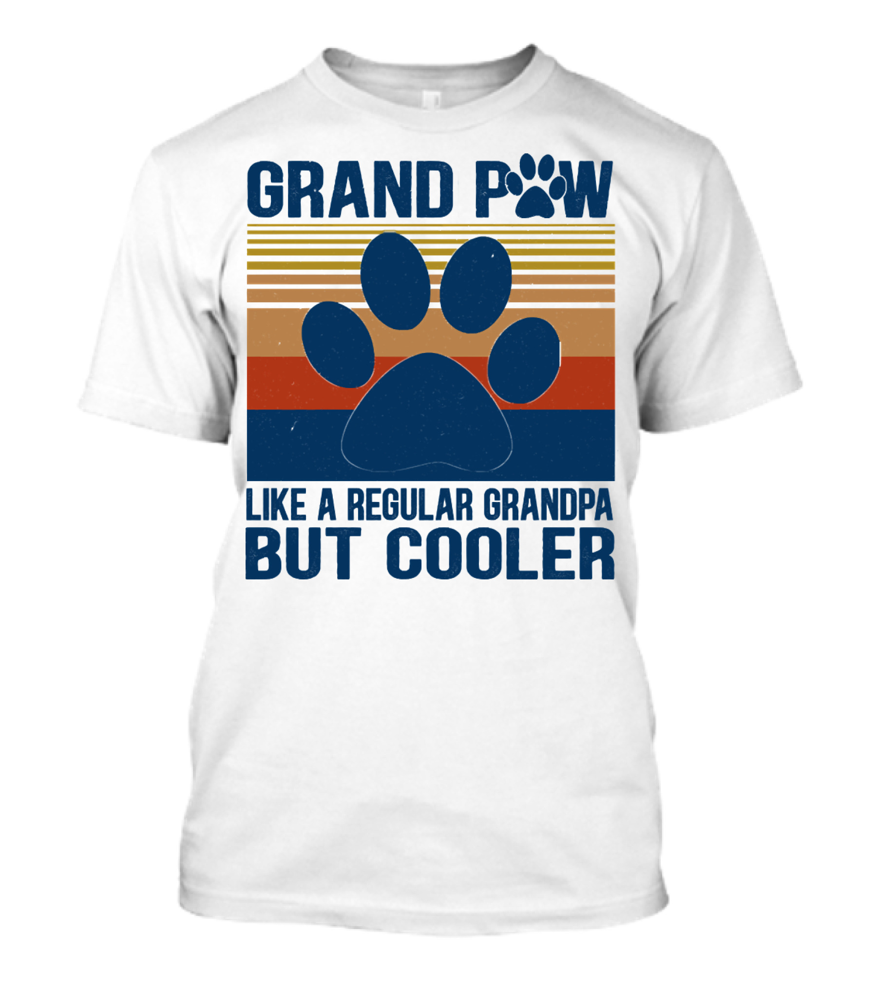 The GRAND PAW Like a Regular Grandpa But Cooler Retro Paw Prints T-shirt is designed for everyday wear and a consistent fit. Fabric is pre-shrunk ring-spun cotton with durable stitching. See the size chart below for exact measurements.