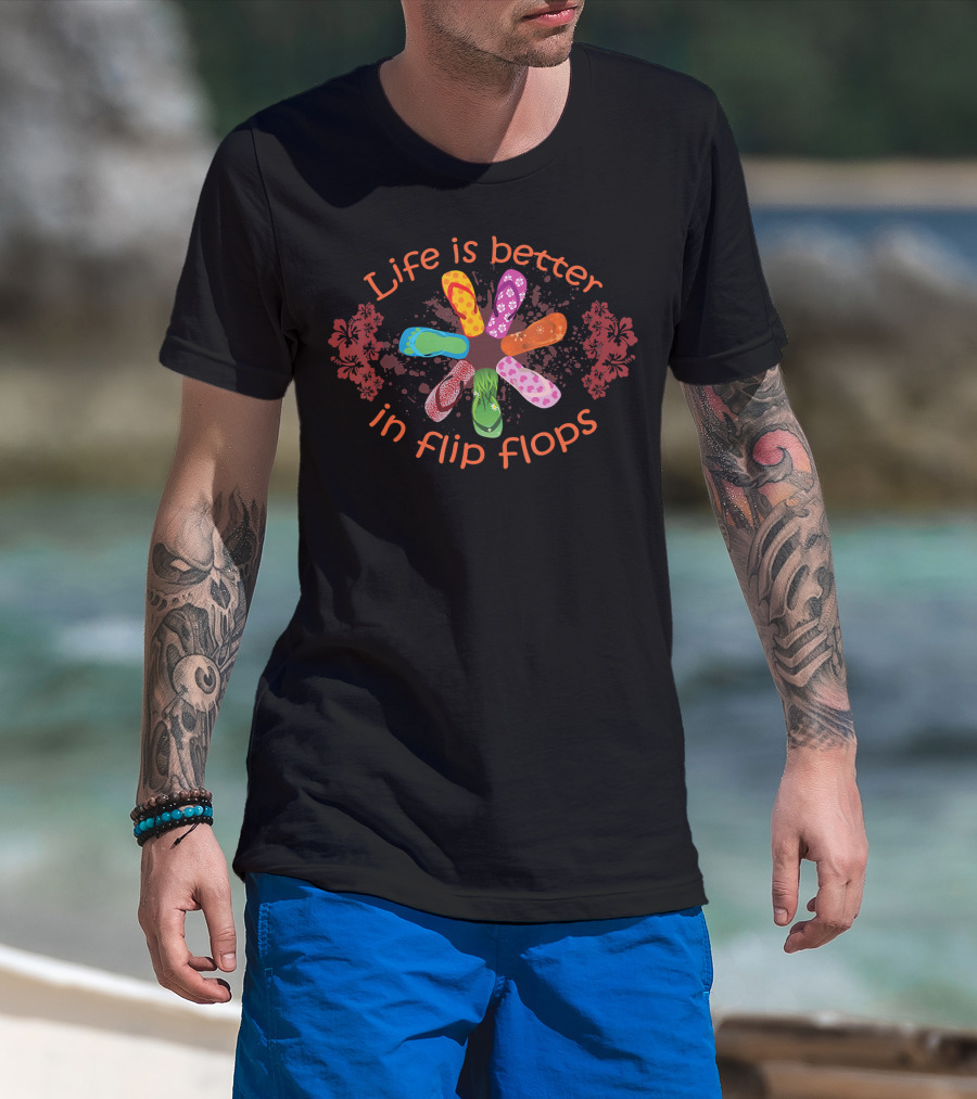 Life Is Better In Flip Flops With Colorful Floral T-Shirt