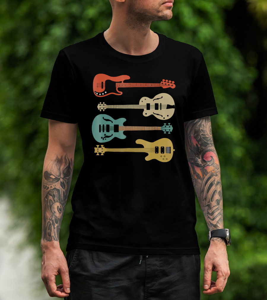 Vintage Retro Bass Guitar Bassist Player Colorful Guitar Collection T-Shirt